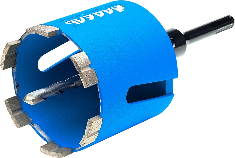 - Возможно использование с центровочным твердосплавным сверлом и различными переходниками (М16 – Шестигранник, М16 – SDS-Plus, М16 – SDS-Max)