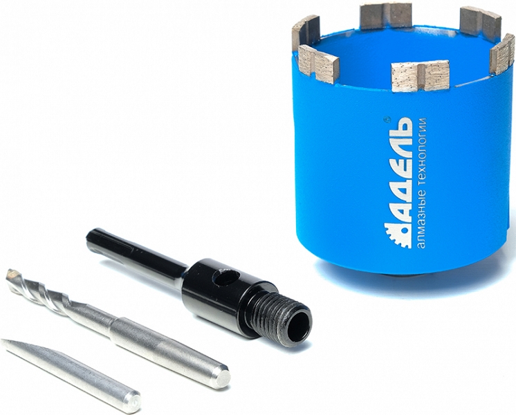 Алмазная коронка для подрозетников по железобетону Адель Super Fast SF-D70 SDS-Plus 72/65 мм (Adel Супер Фаст СФ-Д70 СДС-Плюс 72/65 мм) c адаптером М16 – SDS-Plus, центровочным твердосплавным сверлом и клином предназначена для скоростного сверления железобетона (армированного бетона), бетонных блоков, газобетона, кирпича и других строительных материалов с использованием ручного электроинструмента без охлаждения водой.