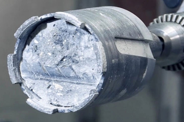 При алмазном бурении по технологии Diamond Hit процесс сверления происходит с микроударом высокой частоты, малой амплитуды и незначительной энергии удара - Высокая скорость сверления арматуры
