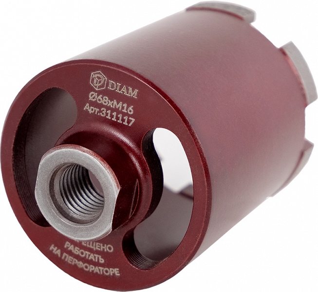 Цена и технические характеристики алмазной коронки с пылеудалением для сухого сверления с микроударом подрозетников Diam Extra Line Hit 68 мм: