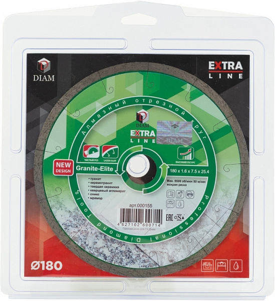 Преимущества алмазного отрезного круга Diam Extra Line 1A1R Корона Granite-Elite 180 мм: