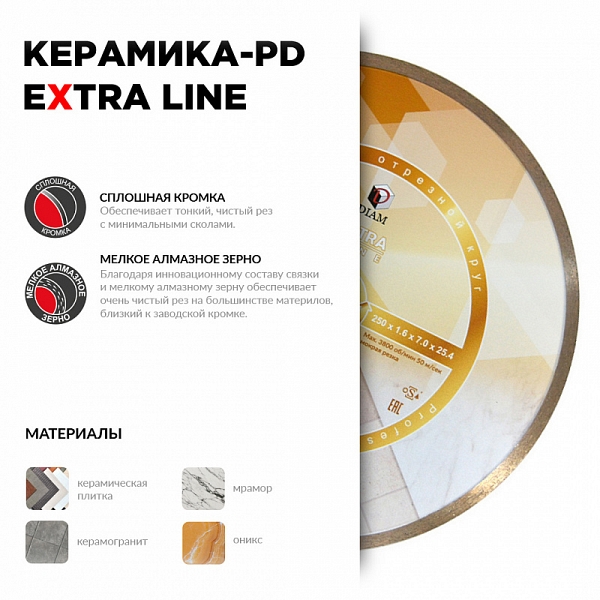 Преимущества алмазного отрезного круга Diam Extra Line 1A1R Корона Керамика-PD 200 мм:
