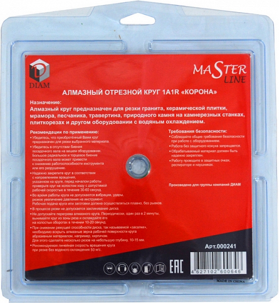 - Корейские технологии: изготовлен по технологиям и под контролем ведущих производителей алмазного инструмента Южной Кореи, специально по заказу ГК Диам