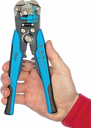Автоматический многофункциональный стриппер КВТ WS-04A (KVT ВС-04А) с винтом микронастройки предназначен для снятия изоляции с проводов сечением 0,05 – 10 мм², резки проводов сечением до 10 мм², снятия оболочки с плоских проводов ВВГ-П и ПУНП, опрессовки изолированных с красной, синей и желтой манжетами наконечников, неизолированных наконечников, автоклемм под двойной обжим 0,5 – 6 мм².