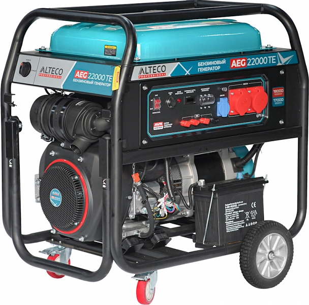 Профессиональный бензиновый генератор Alteco AEG 22000 TE (Альтеко АЕГ 22000 ТЕ) – мощная бензиновая электростанция с электростартером для обеспечения электроснабжением различных объектов, таких, как: строительные площадки, автосервисы или небольшие производства.