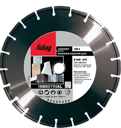 Диск алмазный отрезной Fubag AB-I (Фубаг АБ-И) предназначен для резки плитки, асфальта, бетона, свежеуложенного бетона.