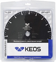 Диск алмазный универсальный Keos Professional 230 мм (Кеос Профессионал 230 мм) предназначен для резки металлов, пластика, резины, бетона, армированного бетона (железобетона), кирпича, древесины и т.д. ушм (болгарками), штроборезами, бензорезами, электрическими резчиками и плиткорезами, стенорезными машинами, как с подачей воды, так и всухую. Подходит для универсального использования, аварийно-спасательных работ и многого другого.