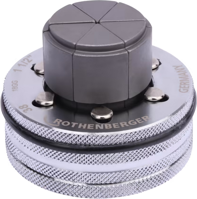 Экспандерная головка Rothenberger Rolock 38 мм (1 1/2")×1,6 мм (Ротенбергер Ролок 38 мм (1 1/2")×1,6 мм) – клепаная расширительная насадка для расширения мягких и полутвердых медных труб Ø 38 мм (1 1/2"), толщиной стенки до 1,6 мм, для изготовления точных муфтовых соединений в соответствии с нормами DVGW / DIN / ГОСТ и Gas de France.