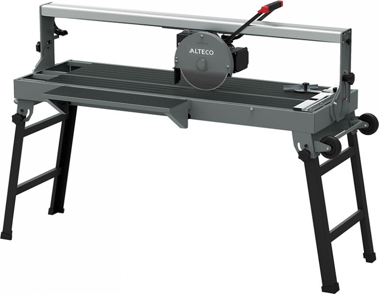 Электрический плиткорез Alteco PTC 1200-250 (Альтеко ПТЦ 1200-250) – эффективный станок для быстрого и качественного распила плитки из керамогранита и керамики, длиной до 1200 мм, толщиной до 52 мм при резке под углом 90°, толщиной до 46 мм при резке под углом 45°, различными дисками в зависимости от материала, с подачей воды.