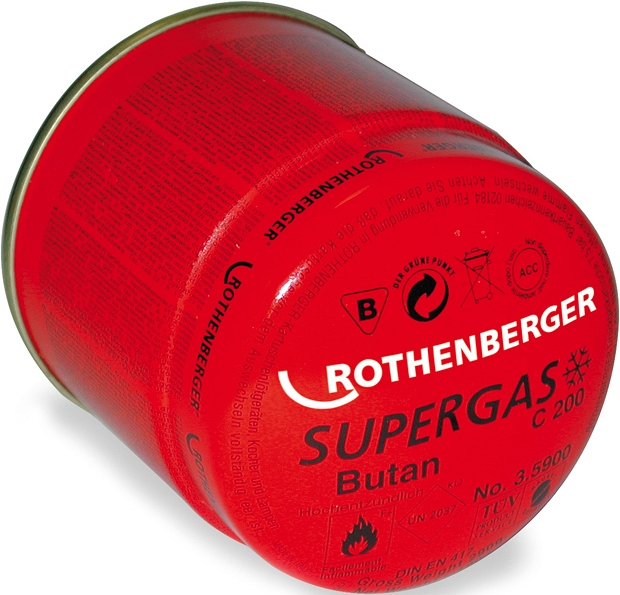 Газовый баллончик для горелки Rothenberger Supergas C 200 (Ротенбергер Супергаз Ц 200) – баллон с бутаном для ручных газовых горелок для пайки.