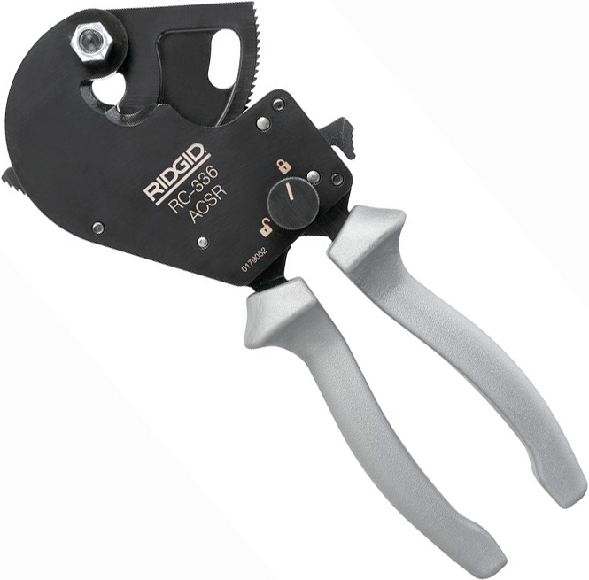 Кабелерез ручной с трещоткой Ridgid RC-336 (Риджид РЦ-336) – легкие и компактные ручные кабельные ножницы с храповым механизмом для резки ACSR кабеля, диаметром до 336 MCM.