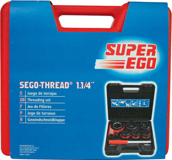 Клупп трубный ручной Super-Ego 600 Set Compact 1/2"-3/4"-1"-1 1/4" NPT (Супер-Эго 600 Сет Компакт 1/2"-3/4"-1"-1 1/4" НПТ) предназначен для нарезки правой конической резьбы NPT на стальных трубах Ø 1/2", 3/4", 1", 1 1/4" на стройплощадке при монтаже систем газо- и водоснабжения, отопления, в котлостроении и производстве.