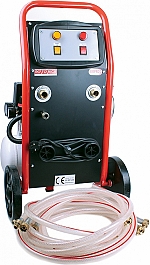 - Надежная портативная мощная электрическая установка для заполнения и очистки на профильной раме с 2-мя колесами, установленными на стальном несущем валу