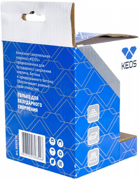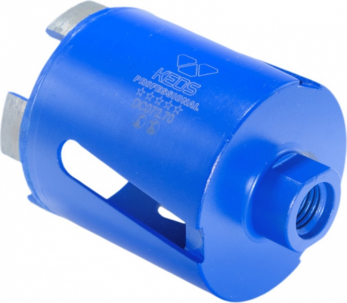 Коронка алмазная для подрозетников Keos Professional M16-SDS Plus 72/70 мм (Кеос Профессионал М16-СДС Плюс 72/70 мм) предназначена для сухого сверления отверстий Ø 72 мм, в том числе и для подрозетников, в бетоне, газобетоне, пеноблоке, кирпиче и прочих материалах, используемых для возведения стен, в том числе и армированном бетоне (железобетоне), с использованием перфоратора или мощной ручной дрели. Идеально подходит для монтажа розеток и других инженерных систем, даже в армированном бетоне, для работы в помещениях с чистовой отделкой, без труда проходит стены и перекрытия для проводки коммуникаций электропроводки, водоснабжения, вентиляции и т.д. без лишней пыли и грязи.