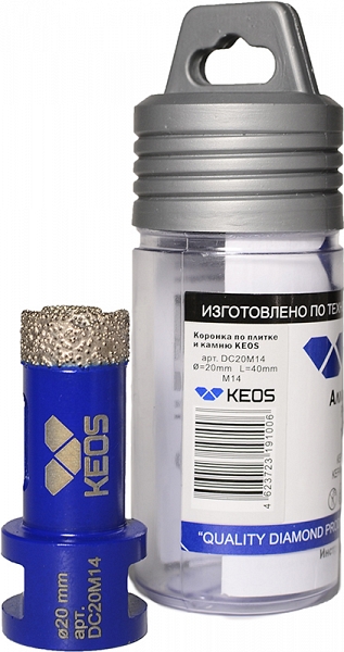 Цена и технические характеристики коронки алмазной по керамограниту Keos Professional Vacuum Brazed M14 20 мм: