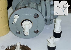 - Уплотнительное кольцо из нейлона между 2-мя блинами на штоке с резьбой и прижимом