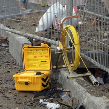 Локационный кабель Leica Digitrace (Лейка Диджитрес) покрыт стекловолоконной оплеткой и состоит из медной проволоки. С его помощью можно трассировать трубу или другой неметаллический продуктопровод с использованием генераторов сигналов Digitex. Проволока вводится в продуктопровод для исследования, после чего, к ней подключается генератор и сигнал на поверхности земли принимается устройством.