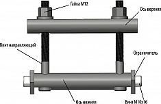 - Установите нижнюю ось с направляющими винтами под трубу в месте передавливания (при необходимости винты можно достать)