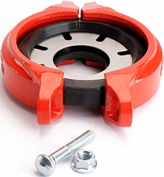 - После затяжки болтов гаечным ключом, муфта плотно охватывает концы труб