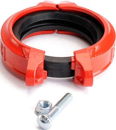 - После затяжки болтов гаечным ключом, муфта плотно охватывает концы труб, обеспечивая механическое и фрикционное сцепление, благодаря которому жесткое соединение предотвращает нежелательное угловое отклонение, смещение оси и вращения после монтажа
