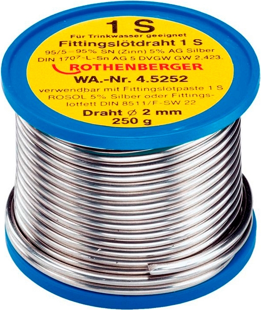 | 45250 | Rothenberger 1 S | 96% олово (Sn) 4% серебро (Ag) |