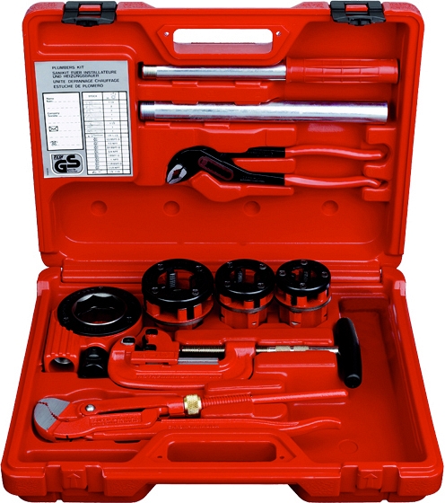 - Весь инструмент, необходимый профессиональному сантехнику в работе, собран в одном прочном пластиковом чемодане