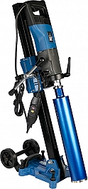 - Транспортировочные колеса позволяют без труда перемещать штатив с уже установленным мотором и коронкой по строительной площадке
