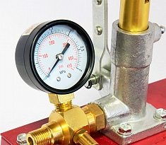 - Постоянство давления в испытываемой системе обеспечивается 2-мя клапанами и вентилем с шаровыми запорами