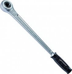 - Трещоткой повернуть отбортовочную голову влево, следить за надежной посадкой седла