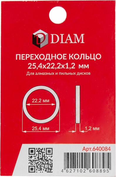 Цена и технические характеристики переходного кольца для алмазных и пильных дисков Diam 25,4×22,2×1,2 мм: