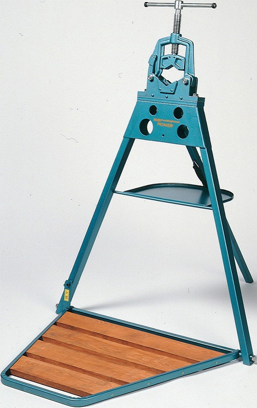 Переносный портативный верстак с откидными трубными тисками Ridgid Pionier 3 (Риджид Пионер 3) используется для фиксации труб Ø 10 – 89 мм (1/8" – 3") и гибки труб Ø 1/2" – 2". Имеет плиту для гибки труб, лоток для хранения инструментов. Складной напольный дощатый настил придает дополнительную устойчивость инструмента.
