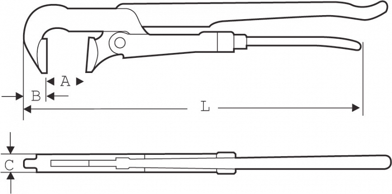 Разводной ключ шведик с губками под 90° Super-Ego 90°-1" (Супер-Эго 90°-1") – ключ трубный шведский для труб Ø до 40 мм (1").
