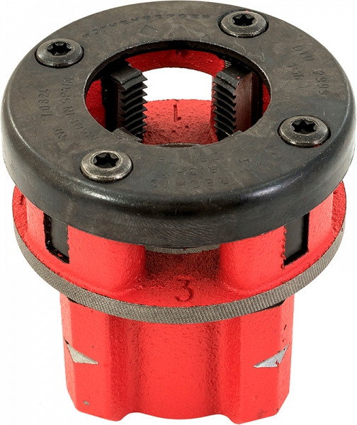 - Быстросменная резьбонарезная головка с надежным креплением для ручных резьбонарезных трубных клуппов Super Cut, электрических резьбонарезных трубных клуппов Supertronic 1250 и 2000