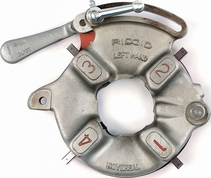 Ручная резьбонарезная голова для станка Ridgid 856 BSPT L (Риджид 856 БСПТ Л) предназначена для нарезки левой трубной конической резьбы BSPT L на трубах Ø 1/8" – 2" (6 – 50 мм) на резьбонарезных станках Ridgid 300, 300 Compact, 300-A с кареткой, 535, 535А, 1233 и других производителей в промышленной отрасли.