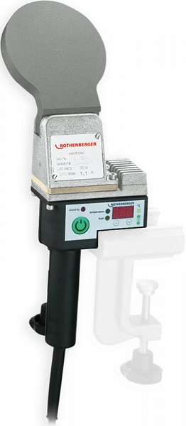 Ручой нагревательный элемент для стыковой сварки пластиковых труб Rothenberger Roweld HE 120/45º (Ротенбергер Ровелд ХЕ 120/45º) с электронной регулировкой температуры предназначен для стыковой сварки пластиковых (полиэтиленовых (пэ / pe, пнд / hdpe), полипропиленовых (пп / pp), поливинилиденфторидных (пвдф / pvdf), полибутеновых / полибутиленовых (пб / pb)) и других полимерных труб и фитингов (фасонных деталей) Ø 20 – 110 мм встык для работы навесу или с креплением на верстаке при помощи струбцины.