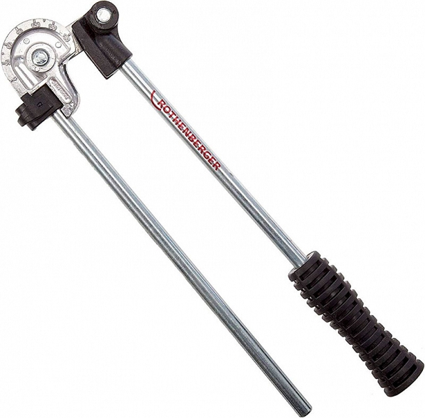 Ручной рычажный трубогиб Rothenberger 8 мм (5/16") (Ротенбергер 8 мм (5/16")) предназначен для точной холодной гибки двумя руками алюминиевых, мягких медных и тонкостенных стальных труб Ø 8 мм (5/16") на угол до 180° в мастерских и на стройплощадках при монтаже разнообразных систем пневматики и гидравлики, вентиляции и кондиционирования, а также в машиностроении и холодильной технике.