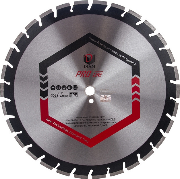 Сегментный алмазный круг Diam Pro Line 1A1RSS Асфальт 500 мм (Диам Про Лайн 1А1РСС Асфальт 500 мм) – профессиональный алмазный отрезной диск с лазерной сваркой сегментов, произведенный по технологии DPS (позиционирования алмазов в режущем слое), для сухой и мокрой резки асфальта с тяжелым наполнителем, асфальтобетона, абразивного песчаника, кирпича и других абразивов на резчиках швов, стенорезных машинах, камнерезных станках и другом оборудовании, как с водяных охлаждением, так и без него.