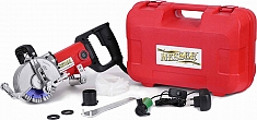 - Не имеет "слепой" зоны при резке штробы в углах помещения, благодаря конструктивной особенности защитного кожуха – когда штроборез упирается в перпендикулярную стену, кожух открывается и позволяет продолжить резку штробы глубже в угол