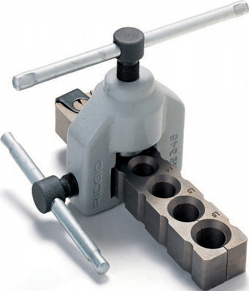 Стандартная развальцовка Ridgid 345 (Риджид 345) – высокоточный инструмент для развальцовки под углом 45° (создания SAE-раструбов 45° с одиночным загибом) труб Ø 3/16", 1/4", 5/16", 3/8", 7/16", 1/2", 5/8" из отожженой меди, латуни, алюминия и мягкой стали.