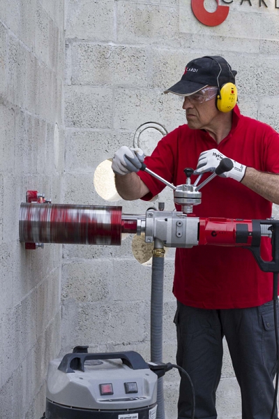 Станина для алмазного бурения с микроударом Cardi LDP 200-2 (Карди ЛДП 200-2) – специальная сверлильная стойка для ручных двигателей сухого и мокрого алмазного бурения с системой микроудара для сверления отверстий Ø до 202 мм алмазными коронками под углом от 0° до 45°! Система сухого алмазного сверления без воды – это решение целого ряда технологических задач, ранее невозможных или вызывающих множество проблем.