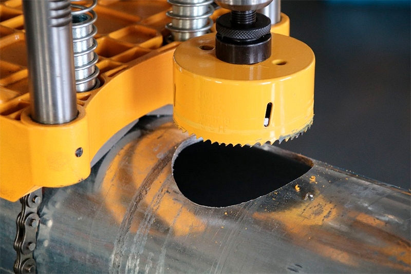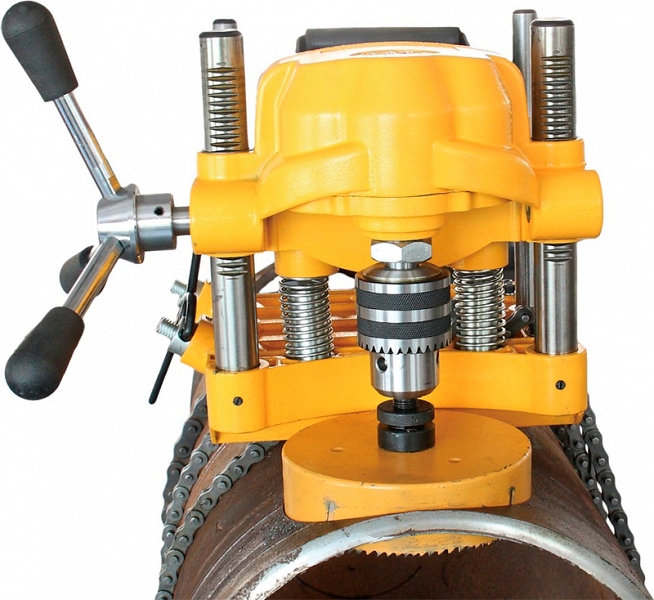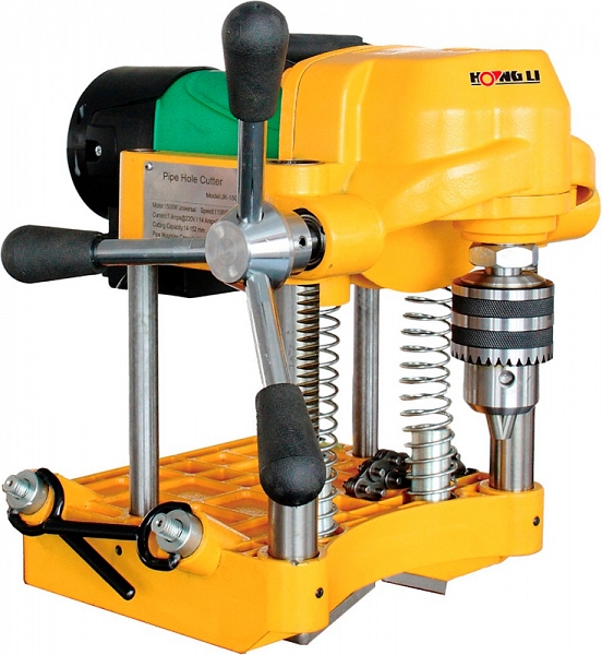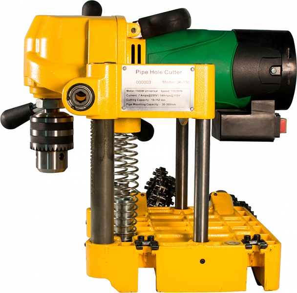 Станок для сверления отверстий в трубах Hongli JK150 (Хонгли ДжиК150) предназначен для вырезания отверстий Ø до 152 мм (6") в стальных трубах Ø 30 – 300 мм (1 1/4" – 12"). Отверстия различных размеров позволяют использовать фитинги для разветвления трубопроводов, находящихся не под давлением (установки разветвлений, отводов, тройников негерметизированных труб).