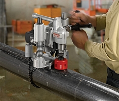 Сверлильный станок для вырезания отверстий в трубах Ridgid HC-300 (Риджид ХЦ-300) предназначен для быстрого и эффективного сверления отверстий максимального Ø до 76 мм (3") в стальных трубах Ø 38 – 200 мм (1 1/2" – 8"). Отверстия различных размеров позволяют использовать такие фитинги (седла), как Mechanical T и Vic-Let tm или сварные седла Weld-O-Let и другие для разветвления трубопроводов, находящихся не под давлением. Отличается наличием зажимного патрона на 13 мм (1/2"), вмещающего оправки для биметаллических коронок (сверел) под все размеры отверстий Ø до 3" (76 мм) и стандартные оправки для биметаллических коронок (сверел) до 11 мм (7/16"). Встроенный электродвигатель с редуктором оптимизирует сверление отверстий в трубах и эксплуатационные характеристики и срок службы режущего инструмента в рабочем диапазоне диаметров. Одинарная рукоять подачи и двухпозиционный переключатель обеспечивают простоту работы. Компактный двухэлементный станок для сверления отверстий в трубах Ridgid HC-300 используется в тесных или труднодоступных местах. Обладает огромными возможностями, которые трансформируются в бесподобные эксплуатационные характеристики на месте выполнения работ и в цеху.