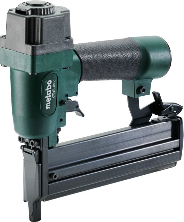 Степлер пневматический Metabo DKNG 40/50 (Метабо ДКНГ 40/50) используется для внутренней отделки, обшивке стен и потолков, монтаже плинтусов, крепления досок с системой шип-паз, ДСП с помощью скоб и гвоздей.