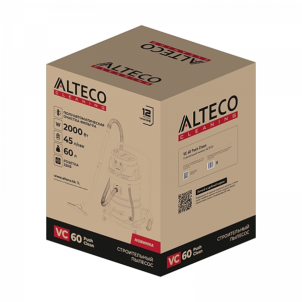 Цена и технические характеристики строительного пылесоса Alteco VC 60 Push Clean: