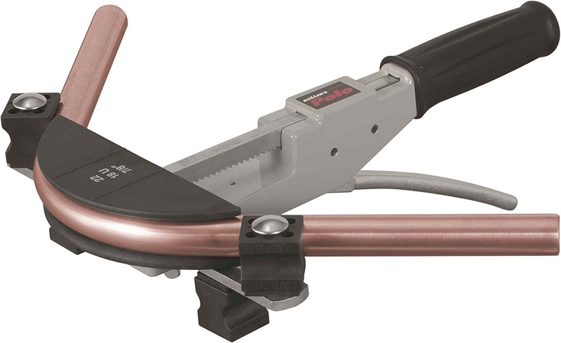Трубогиб арбалетный ручной Roller Polo Set 10-12-15-18-22 мм (Роллер Поло Сет 10-12-15-18-22 мм) – практичный, очень удобный, сверхлегкий трубогиб для работы одной рукой для легкой, простой и точной гибки мягких медных труб Ø 10 – 22 мм, 3/8" – 7/8", толщиной стенки до 1 мм; медных труб с мягкой оболочкой Ø 10 – 18 мм, 3/8" – 5/8", толщиной стенки до 1 мм; труб из углеродистой стали с мягким покрытием систем пресс-фитинга Ø 12 – 18 мм, толщиной стенки до 1,2 мм; труб из мягкой прецизионной стали Ø 10 – 18 мм, толщиной стенки до 1 мм; многослойных композитных труб Ø 14 – 32 мм; на угол до 90° при изготовлении колен и отводов на стройплощадках и в местах с ограниченным доступом.