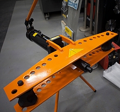- Тип: ручной гидравлический (продавливает заготовки при помощи гидравлической направляющей) – отличен от других вариантов ручных трубогибов тем, что его привод усилен гидравликой, что позволяет монтажнику прикладывать меньше усилий и тратить гораздо меньше времени при гибки стальных труб