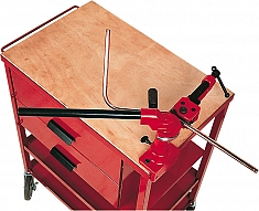 – Желтые стандартные сегменты: Ø труб 10 – 22 мм, толщина стенки труб 1 - 1,5 мм, угол изгиба 0° – 180°, малый радиус изгиба - Дополнительная принадлежность для крепления на верстаке: опорное основание, в которое устанавливается трубогиб, экономит место и позволяет работать в горизонтальном и вертикальном положении, хранится в чемодане для трубогиба