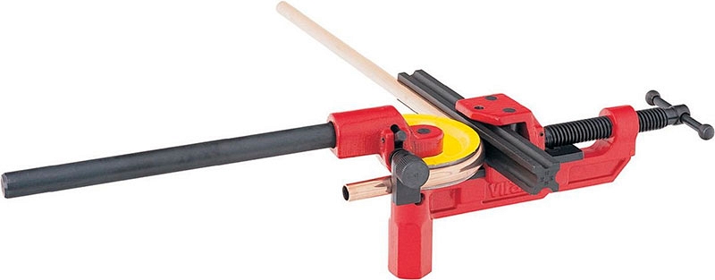 Трубогиб ручной со свободной направляющей и универсальными сегментами Virax 8-10-12-14-16-18-20-22 мм (Виракс 8-10-12-14-16-18-20-22 мм) – верстачный настольный рычажный трубогиб для гибки медных, алюминиевых, латунных, тонкостенных стальных и нержавеющих, изолированных труб Ø 8, 10, 12, 14, 16, 18, 20, 22 мм, толщиной стенки 0,8 – 1,5 мм, на угол до 180°, с креплением на верстаке или в тисках.