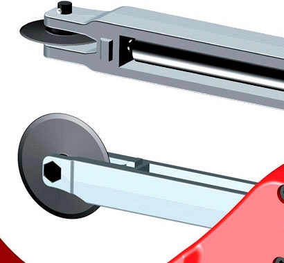 - Третий направляющий ролик регулируется в 2-х положениях для лучшего направления трубы при резке: