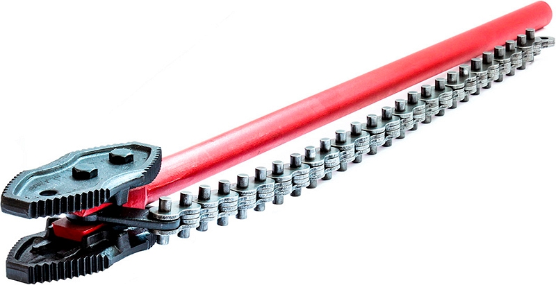 - Прочная цепь из специальной стали c улучшенной термообработкой подгоняется под трубы всех указанных диаметров